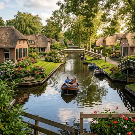 I fshehur në provincën e Overijssel, Giethoorn është një fshat simpatik holandez i njohur për kanalet e tij të qeta, shtëpizat me çati kashte dhe rrugicat pa makina. Shpesh i quajtur “Venecia e Veriut”, Giethoorn u ofron vizitorëve një vendpushim të qetë mes ujit, gjelbërimit dhe arkitekturës shekullore.