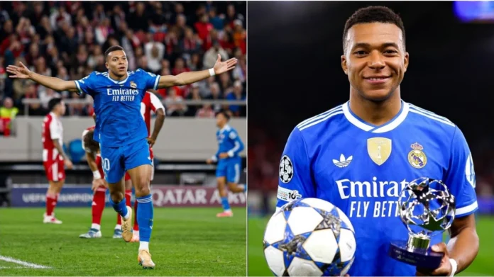 Kylian Mbappé has been named the Champions League ‘Player of the Week’ following his brilliant four-goal performance that helped Real Madrid secure a 4–3 victory over Olympiacos on Wednesday night.