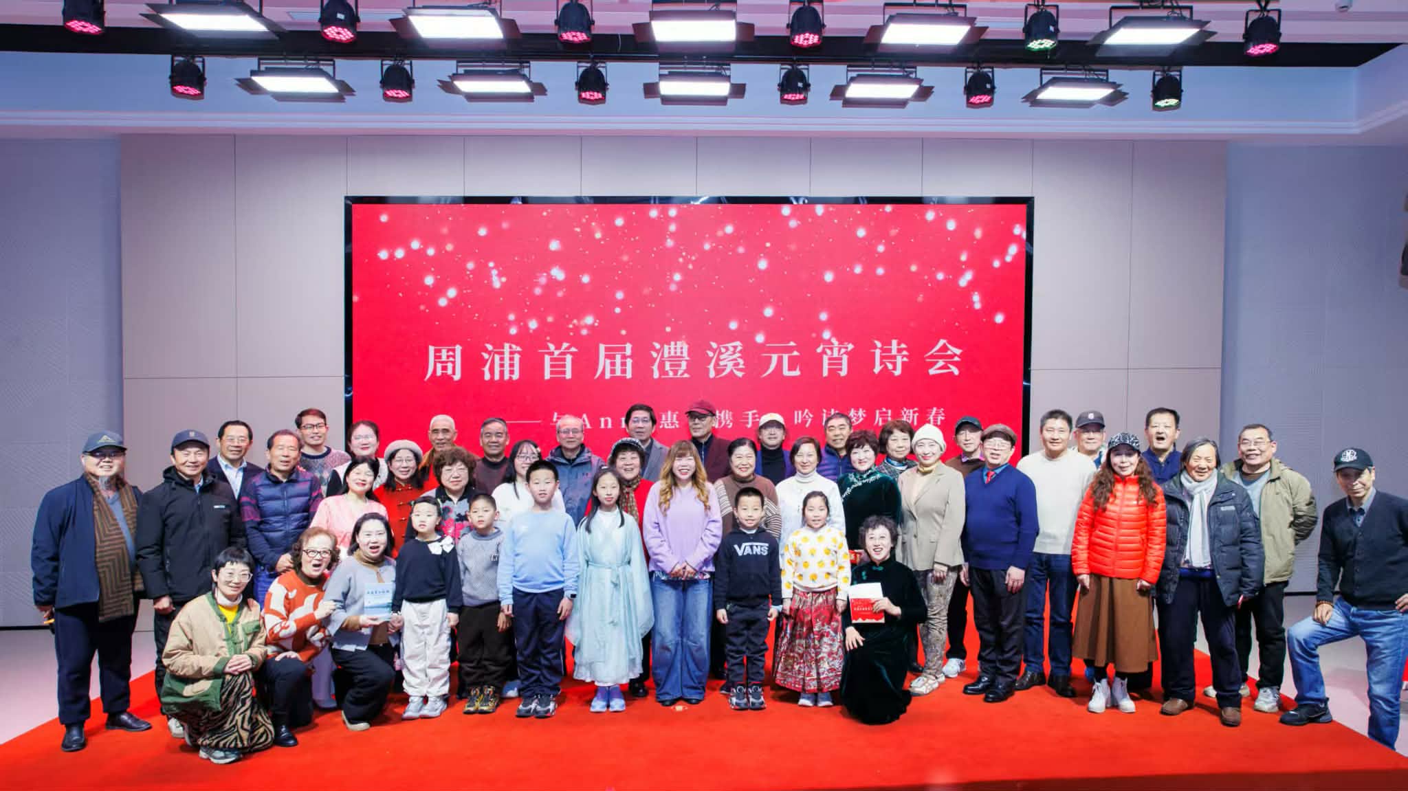 . Chief Planner Guo Nankai and over ten guests attended the opening, with more than a dozen local residents visiting spontaneously that day. The centerpiece of the exhibition was scheduled as the “Lixi Lantern Festival Poetry Gathering.” During the preparatory period, renowned Chinese poets Guo Yuefang and Zhao Lihong, along with international poets from several countries, sent video congratulations. II. Lantern Festival Poetry Gathering: Poetry Enriches the Festival, Emotion Fills Lixi On the afternoon of March 1, the “Lixi Lantern Festival Poetry Gathering” was held at the Zhoupu Cultural Center, attended by nearly a hundred poetry enthusiasts.